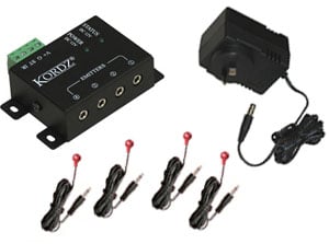 An infrared remote ir extender also referred to as a repeater has a receiver designed to pick up the infrared signal from your remote control and relay it via radio waves to the device being controlled.